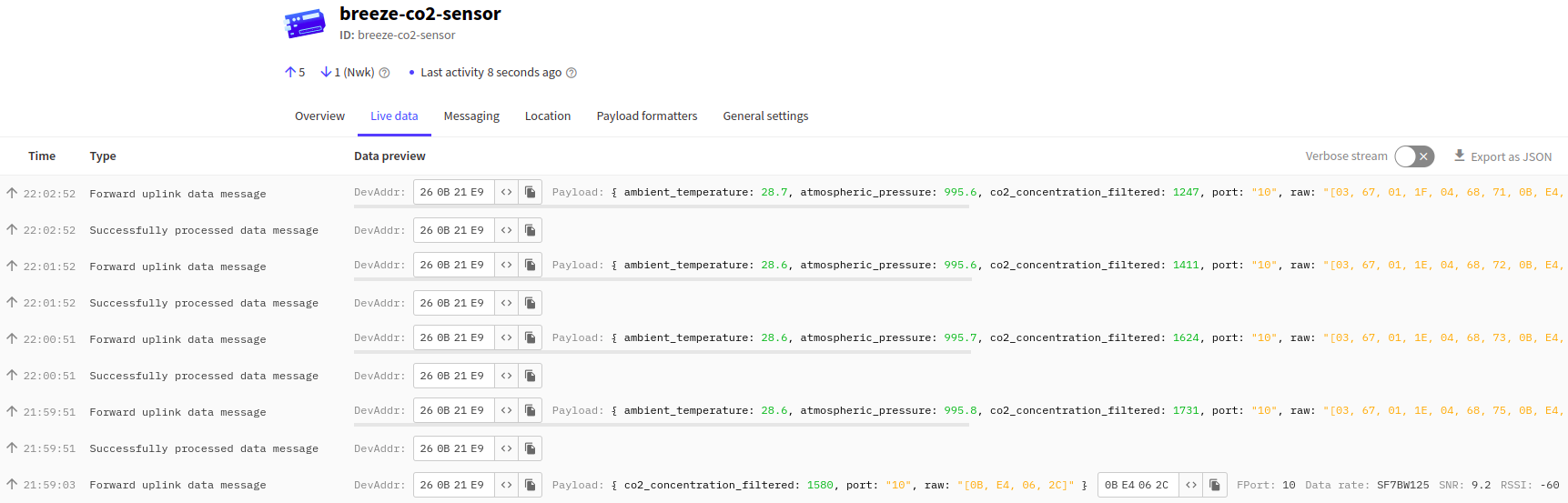 7. After successfully connecting the device to TTN and ensuring it’s sending data, let's take a closer look at what data the device sends: