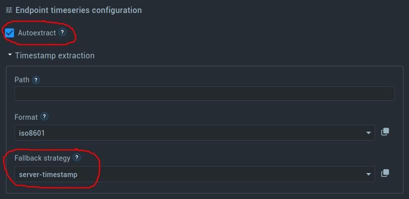 - Select Fallback strategy as server-timestamp and ensure Autoextract is selected.